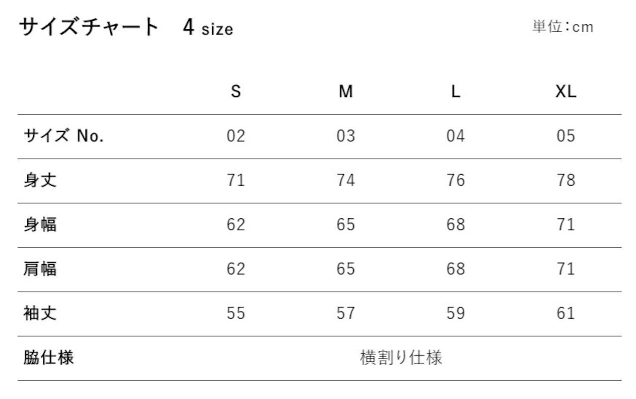 ボディはトレンドに合わせ巧みに設計されたベストサイズスペック。特に袖周りのゆとりを大きくもたせ、ほどよくドロップさせた肩回りと袖丈の長さで絶妙なルーズ感を演出。