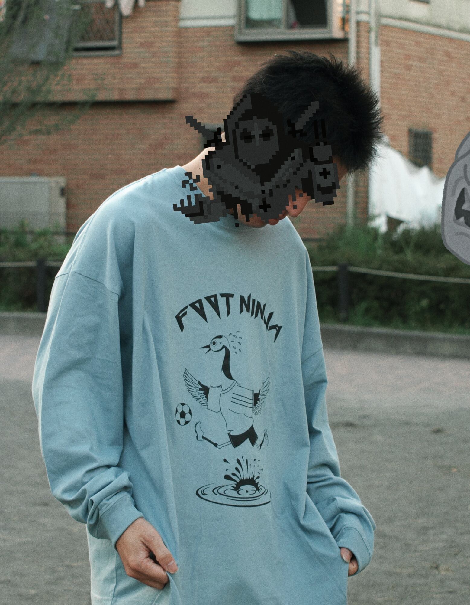 WHITECRANE LONG SLEEVE SHIRT ACIDBLUE&BLACK